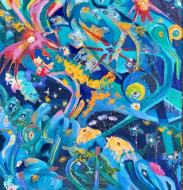 NIGHT OF THE KILLING FROST, oil on canvas, 36×24 AND JUST LIKE THAT, in a final fit of beauty, the garden withers and crashes to its end.